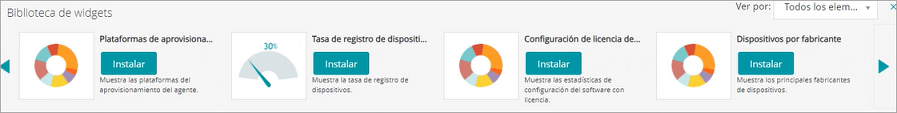 Los widgets del panel de administración de activos ofrecen información general de activos administrados por la organización o el dispositivo, como se seleccione.