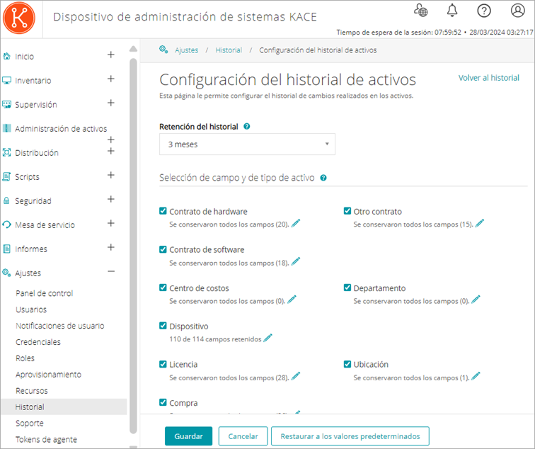 Suivi des ressources physiques telles que les périphériques, les logiciels, les imprimantes et affichage de l'historique des actifs et de leur configuration. Voir :