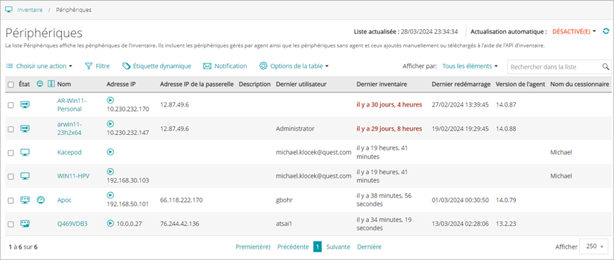 Gestion des périphériques, logiciels, processus, services, analyses et autres éléments de votre réseau. Voir :