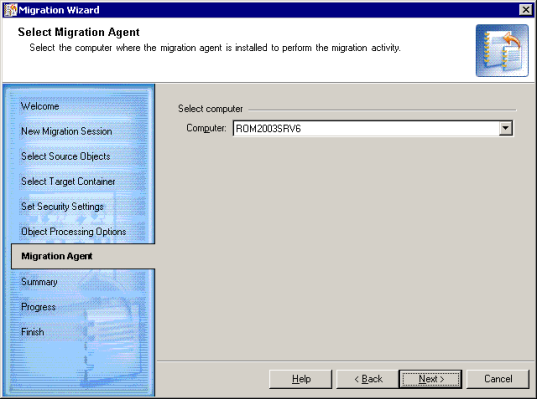This step allows you to select the migration agent to perform the migration.