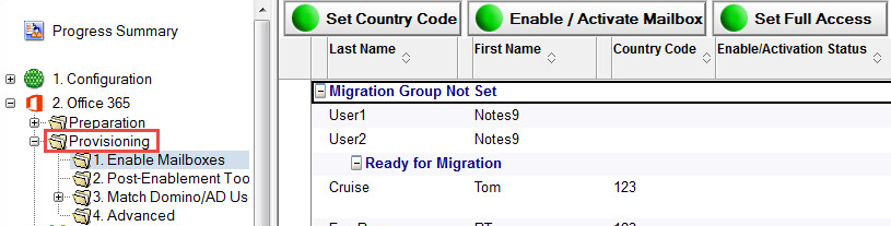 The provisioning step to Enable / Activate Mailboxes does not have to be completed through Migrator for Notes. If a process for applying Office 365 licensing already exists this can be followed to update Office 365 accounts with the relevant license option to create mailboxes.