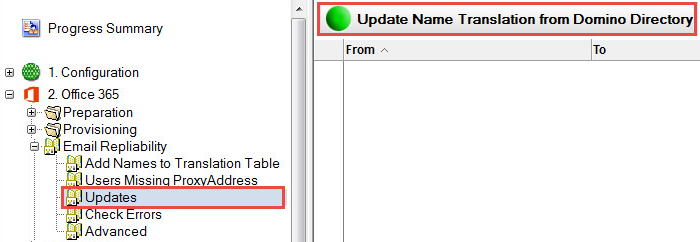 It is recommended to perform regular updates to the Translation Table as new users may be added to the Domino Directory throughout the migration process.