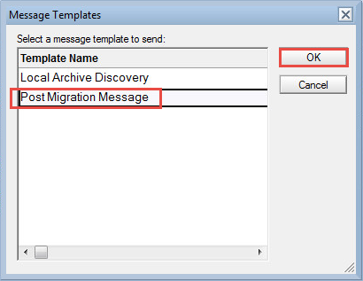 The Message Templates dialog box appears; the Post Migration Message option is selected by default; click OK: