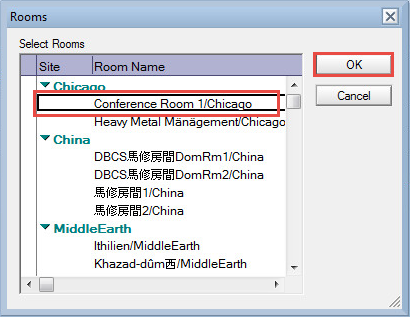 4. A message box appears displaying the rooms you selected in the previous step; click OK to continue