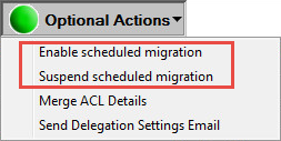 Enable and suspend scheduled migration options are available under the Optional Actions button: