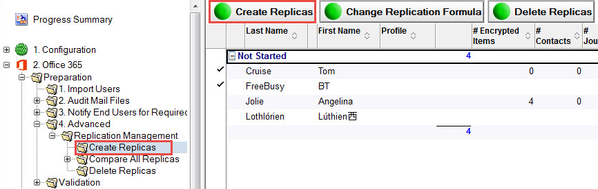 To create replicas, select one or more entries in the Data Pane and click the Create Replicas button. Options to change the replication formula and delete replicas are also available in this view. These replicas will be created on the server and folder specified in the Replica Settings