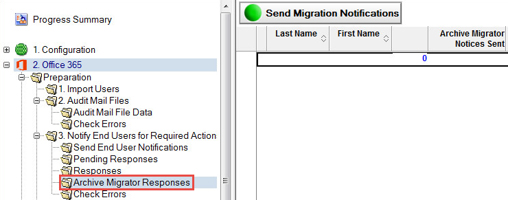 Responses to the Archive Migrator Opt Out option can be seen by clicking Archive Migrator Responses in the Navigation Pane: