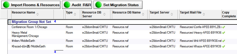 The Rooms and Resources database consists of multiple calendars. You cannot migrate all Rooms and Resources at once because multi-calendar databases are not supported in Microsoft Exchange. For this reason, you need to import each room and resource from this database separately into the server.