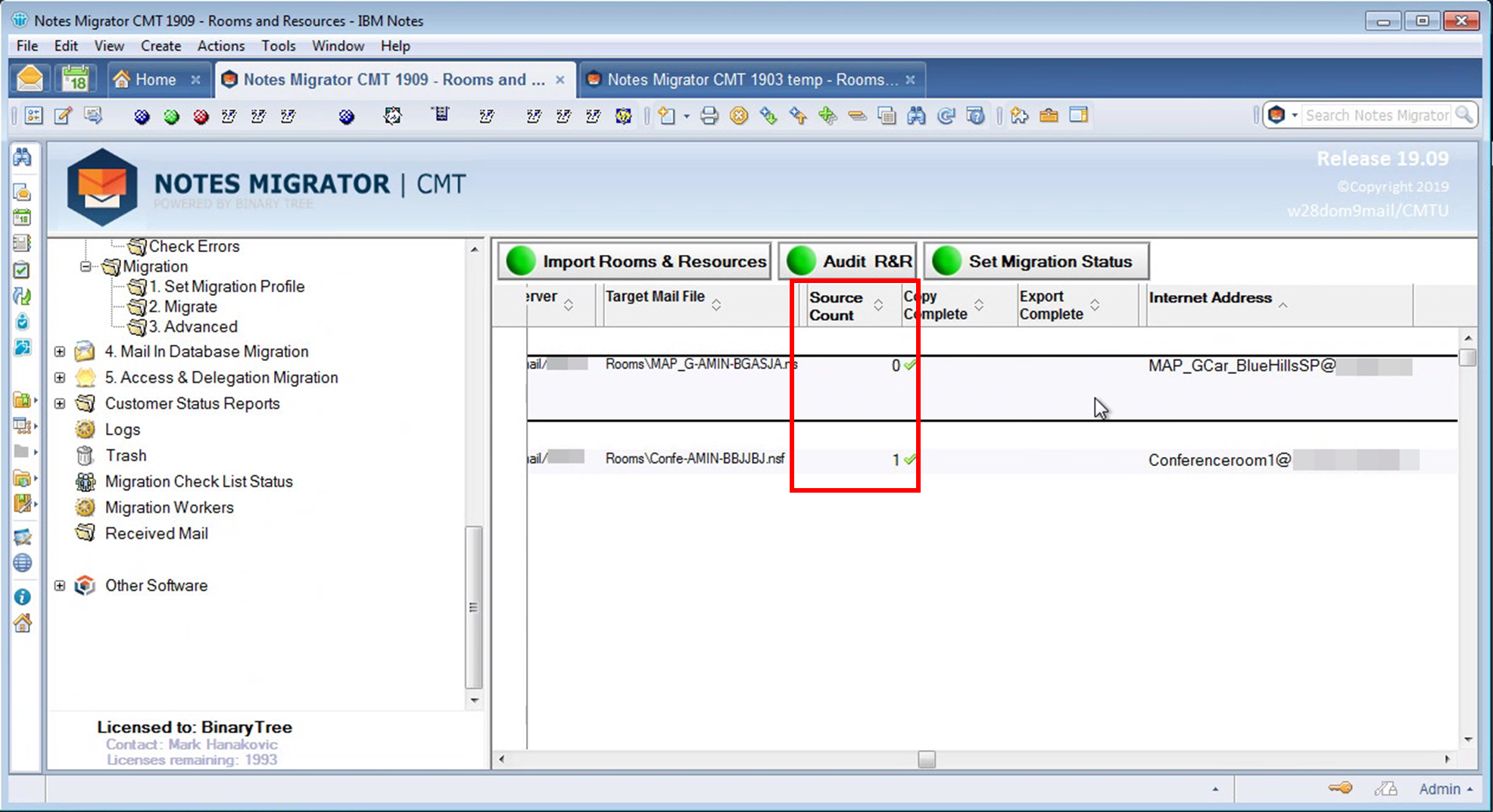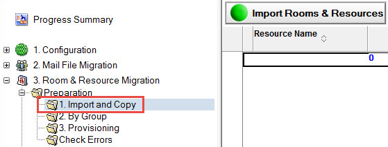 Expand the Rooms & Resources Migration | Preparation | Import and Copy view in the Navigation Pane: