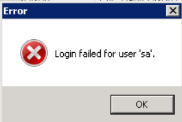 Note: If the login information is incorrect, the following error will be received. The credentials to connect to the SQL server instance should be corrected, and then the Connect should be retried.