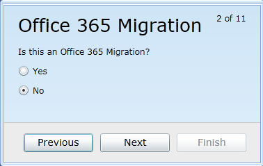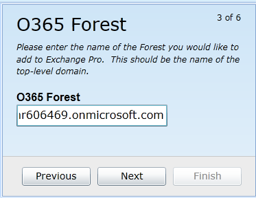 Continuing this procedure from the Office 365 Migration screen, where you clicked Yes to begin defining an Office 365 Tenant forest: