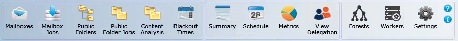 • Public Folder Jobs: Manages the sequence of migration requests for the selected migration destination. Public folder migration is only enabled during on-premises cross forest migration projects.
