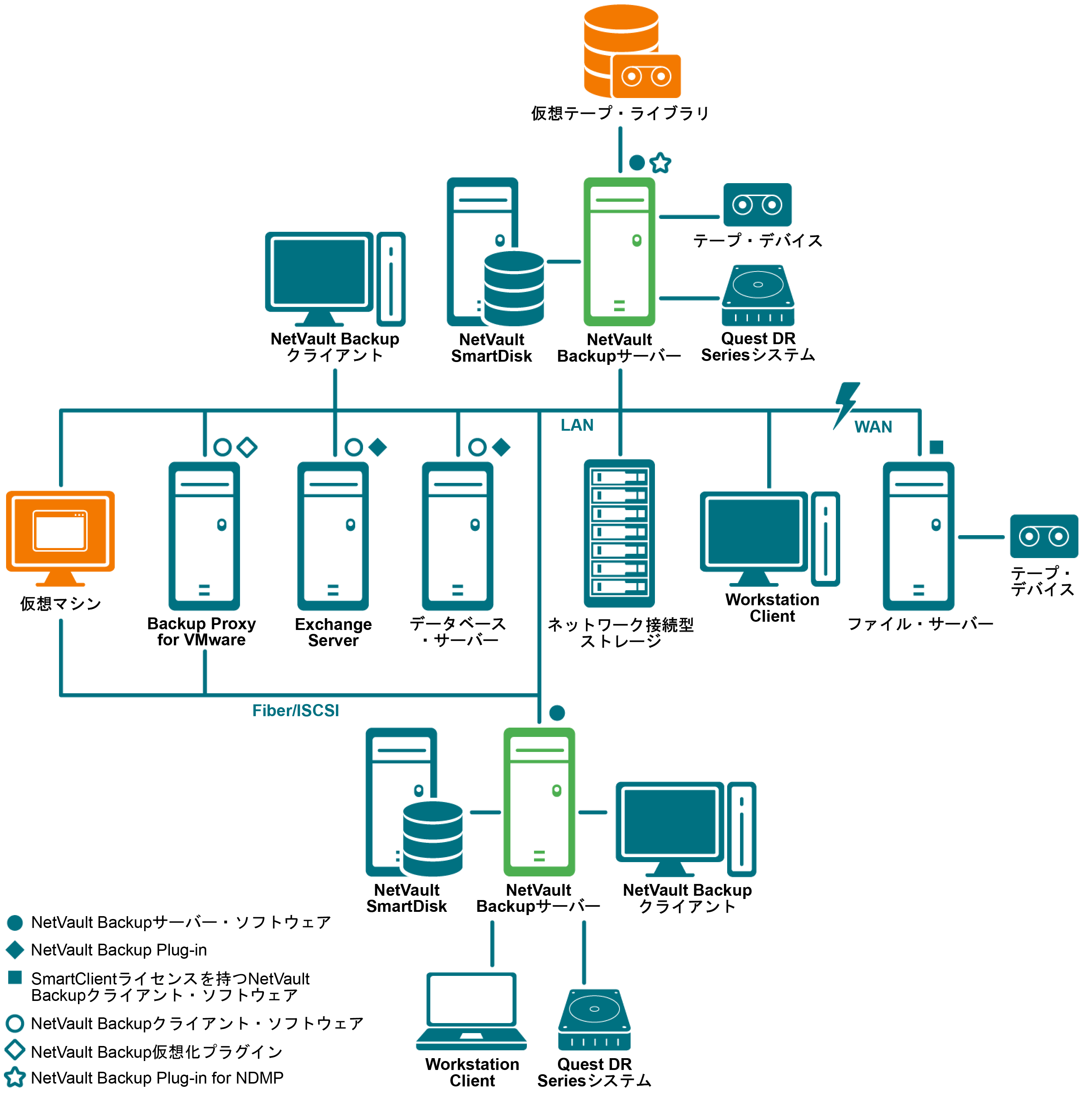 NetVault Backup配備の概要を次の図に示します。