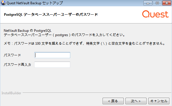 PostgreSQLデータベース・スーパー・ユーザーのパスワードを指定する方法についての詳細は、「NetVault Backupの名前とパスワードの決定」を参照してください。