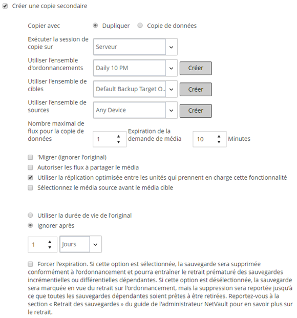 Vous pouvez cocher cette case pour mettre une copie secondaire hors service en fonction de la planification de sa mise hors service. Forcer ce comportement peut provoquer la mise hors service anticipée de sauvegardes incrémentielles et différentielles dépendantes.
