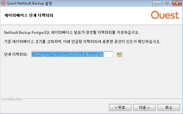 NetVault Backup 기본 설치 경로는 기존 설치 경로와 같습니다.