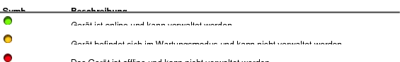 Sie können die Liste der Geräte anzeigen, die zum NetVault Backups Server hinzugefügt wurden. Der Gerätestatus wird mit den folgenden Symbolen angezeigt.