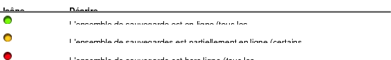 L’état de l’ensemble de sauvegardes est indiqué par les icônes suivantes.