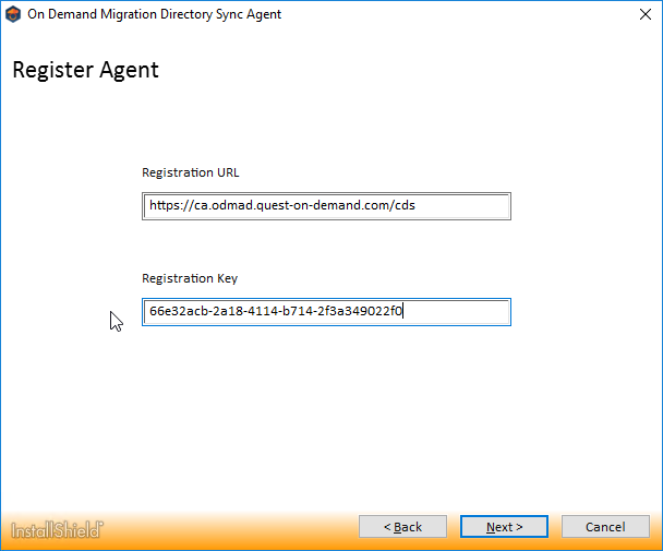12. Copy the Directory Sync agent Registration URL and Registration Key and click Next. This information can be obtained again after the project is configured.