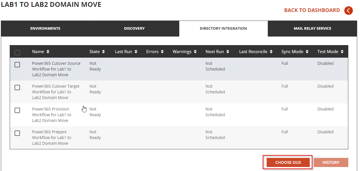 NOTE Domain Move projects will not create any objects in the source or target Active Directory; it simply requires this OU information to complete the project setup.