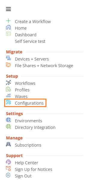 3. Click Configurations in the left navigation menu.