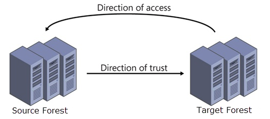 With the addition of the one-way trust we can establish a selective authentication model to limit and restrict the access of target objects to explicitly chosen target accounts and source resources by source forest administrators.