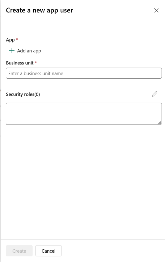 - On the Create a new app page select Business unit, and add the suggested business unit.