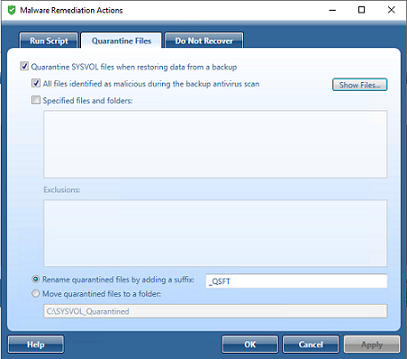 You can also quarantine files on the domain controller after restoring Active Directory data from a backup.