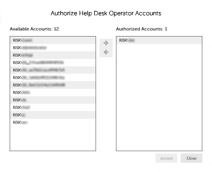This dialog appears when the Search button is clicked in the Group section of the Authorized Help Desk Operators section.