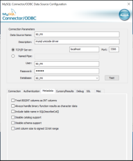 Enter a connection string or a DSN name that connects to the MySQL database.