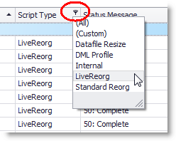 Show/Hide LiveReorg Detail pane. Enabled only for Live Reorg scripts in the Detail pane. |
