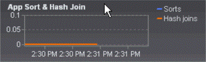The App Sort & Hash Join graph contains two series that summarize total sort activity generated by the application over consecutive monitoring intervals: