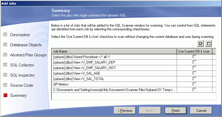 Note: When you close the Add Jobs wizard, the newly added Jobs are automatically marked in the SQL Scanner window with a black checkmark in the far left of the row.