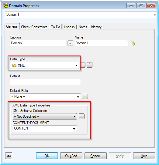 Default Object - Select a default object that will be bound to dictionary type (alias data type in Microsoft SQL).