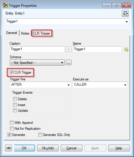 CLR Trigger - If you select this checkbox, you can define CLR trigger on tab CLR Trigger.
