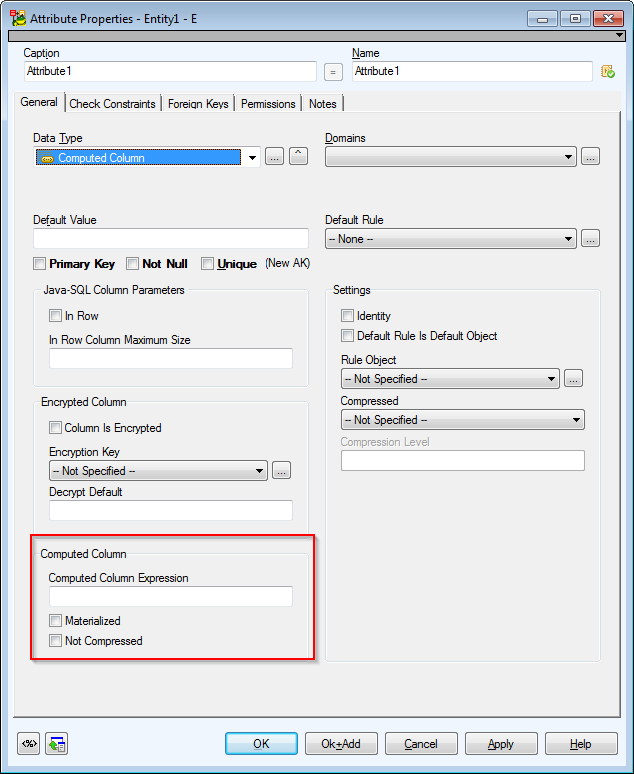 Default rule Is Default Object - Select this checkbox if you want to bind default rule (known as default object in Sybase ASE)  to attribute.