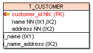 Note:Even when the indexes are not displayed, you can see which attribute belongs to which index (e.g. attribute Name is assigned to indexes i_name and i_name_address - (IX1,IX2)
