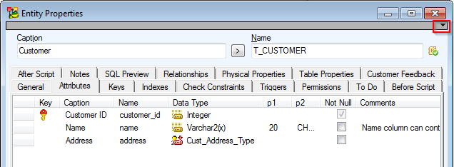• Is available in Object Properties dialogs and forms (entity, attribute, check constraint, view, function, users, user groups etc.).