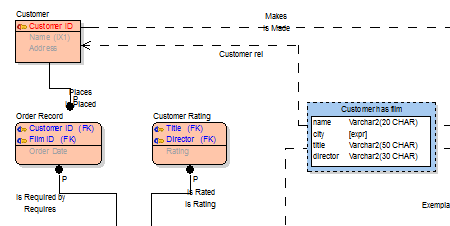 Lines can be rearranged manually to clearly express a link between columns in entities.