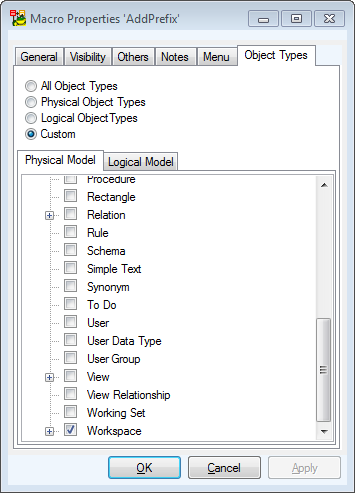 1. On tab Visibility, select where you want to apply the macro – Physical Model.