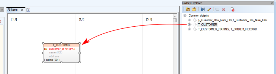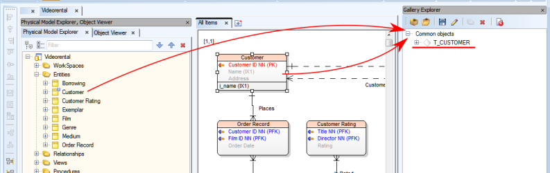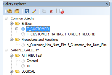 Toad Data Modeler allows you to reuse frequently used parts of your model, no matter if they are entities, single attributes, stored procedures or other objects. This can be done using Gallery where you can simply drag and drop items from your models and use them in your other models.