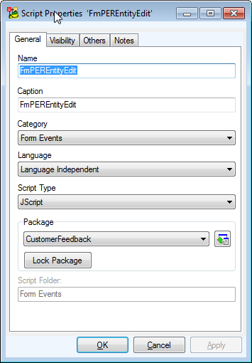 Set the script name to FmPEREntityEdit. - This is the name of the form we want to write the script for. See the "Modifying a Form" topic to find out where the form name is defined.