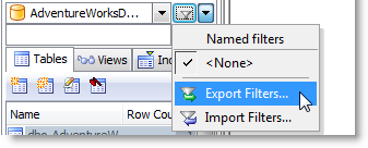 • To export Named filters or all filters defined for the current connection, click the down-arrow beside in the database field and select Export Filters.