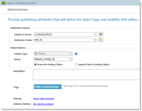 To learn more about publishing data to Intelligence Central, see About Publishing Data.