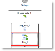 The purpose of this Loop Dataset is to generate a report for each order in the driving query. So, with the Loop Dataset activity still selected, click the Select to File activity in the Toolbox to add it to the Loop Dataset activity.