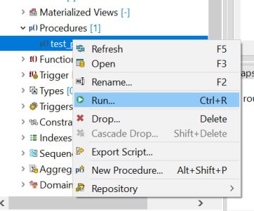 • Right-click a procedure select Run