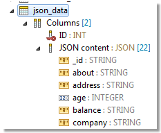 2. Expand the table node, the columns node and then finally the node of the specific JSON column