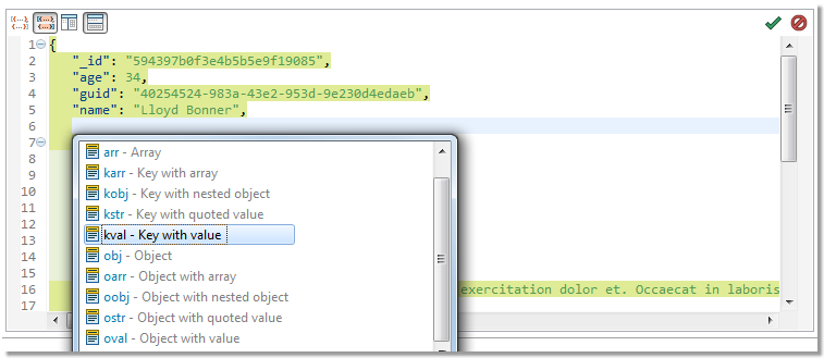 • Content Assist (CTRL (⌘) + SPACE) - suggests JSON templates (see Templates for more information)