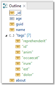 4. The structure of the specific JSON value is then displayed in Outline View