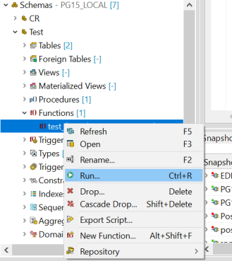 • Right-click a function and select Run